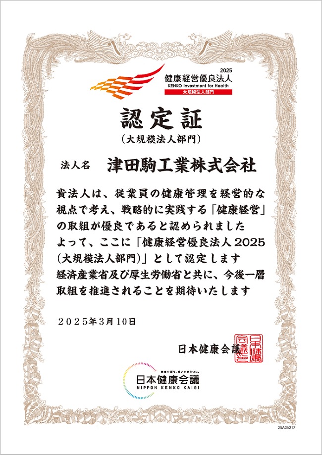 2025年3月10日付で、経済産業省と日本健康会議が推進する健康経営優良法人認定制度において、4年連続で「健康経営優良法人(大規模法人部門)」に認定されました。