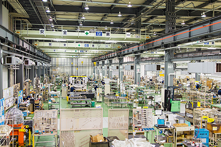 省エネルギーを考慮した季節恒温工場で加工・組立・検査・塗装までの一貫作業を行い、厳重な温度管理が必要な精密加工・三次元測定・精密組立には、20℃に設定された5つの恒温室を使用しています。